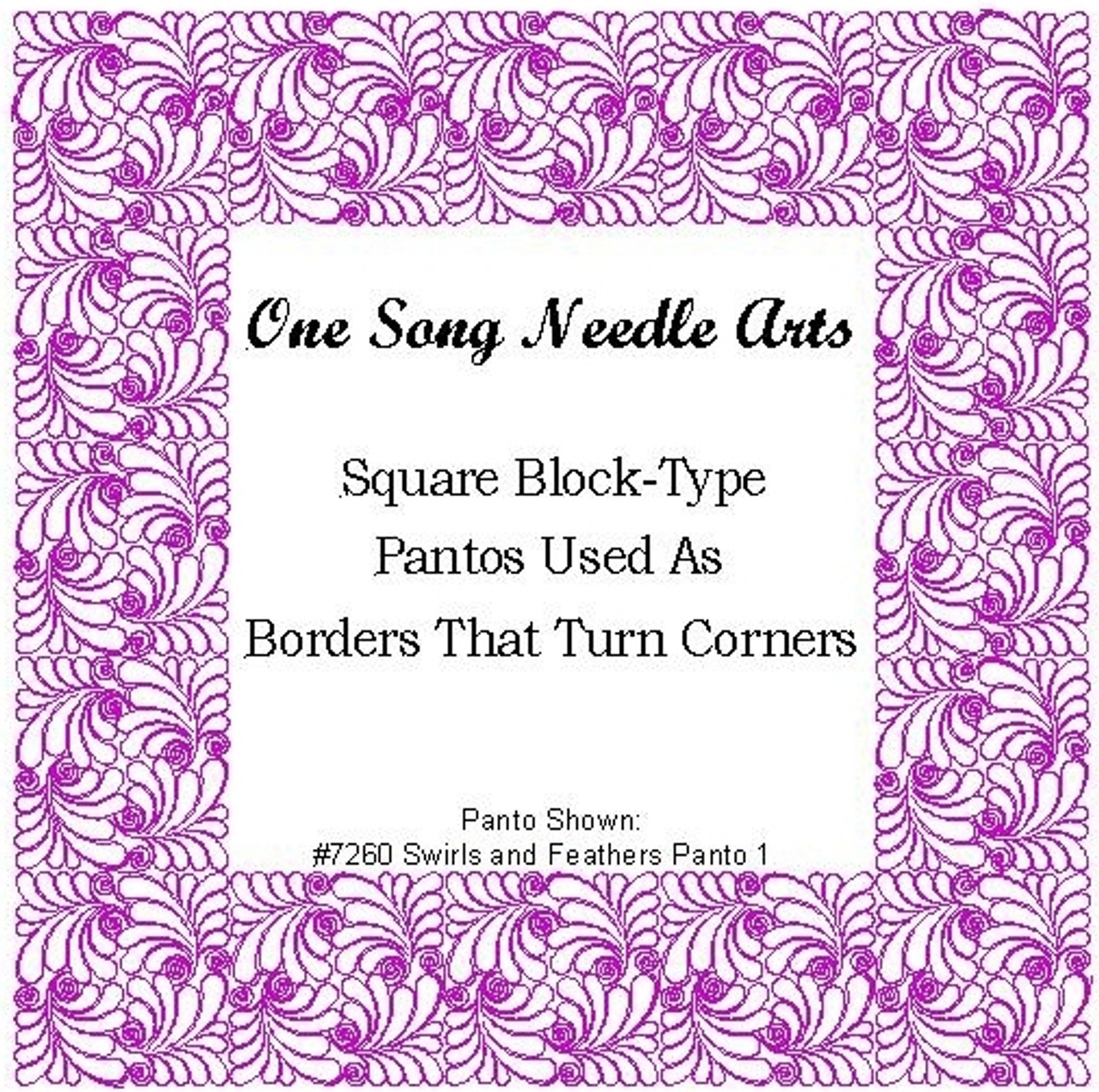 All block-type pantos in one location, making it easy to find the perfect pattern to use as "borders that turn corners." Large block-type pantos fit very well into large pieced borders or wholecloth quilts.