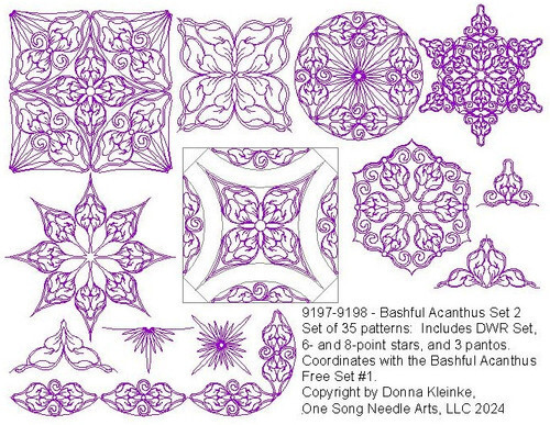 The Free With Purchase offer this week is the BASHFUL ACANTHUS SET #2. This offer ends on Tuesday night, January 20, 2026, at midnight CST. This is a computerized/digital pattern set of 35 patterns in a variety of pattern types, which includes a DWR Set.