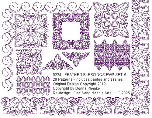 Set of 20 patterns - variety of pattern types from the retire Feather Blessings designs from 2012. These are new patterns that have been revised from the original designs.