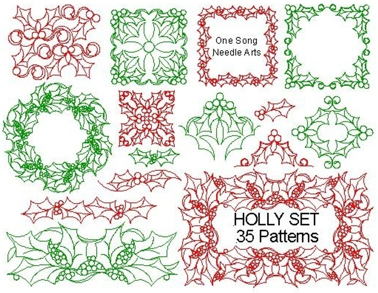 This HOLLY SET 1, is now being offered for sale, with immediate download available.  The set includes 35 patterns.  It was offered as a Free-With-Purchase Set in December of 2023.  If you earned this set at that time, please do not order it now, as you already have all of these pattern files.
