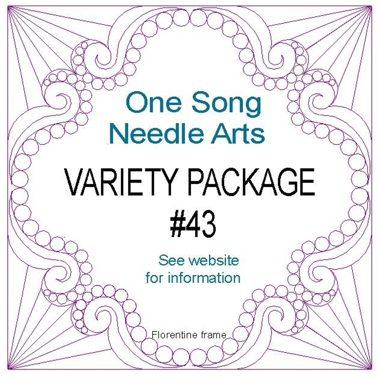 Variety Packages include an assortment of patterns currently offered in the One Song website and are not brand new patterns.  There are 30 patterns in each Variety Package, offering a variety of design names and pattern types.  This will allow you to try out various patterns/designs at a substantial discount.